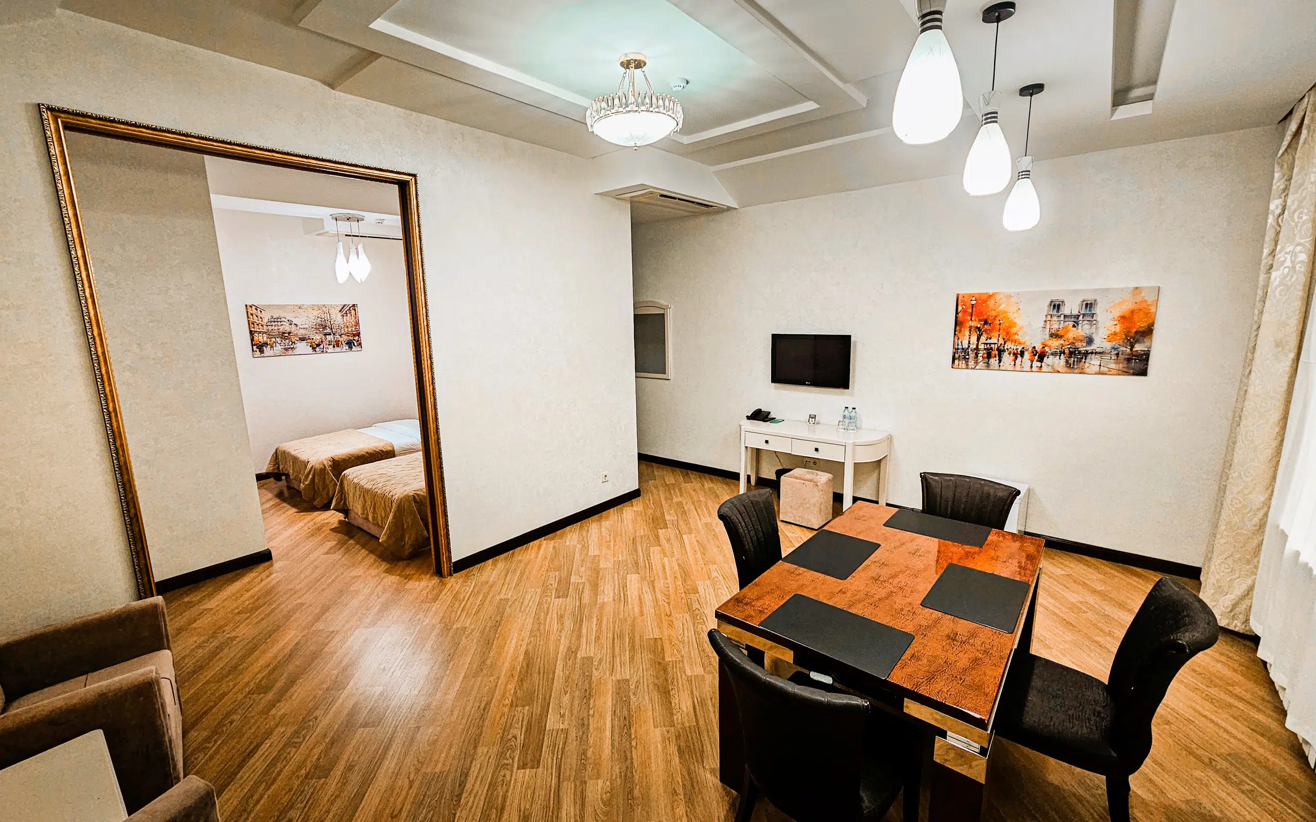 Safran Hotel is located in Baku, 3 km from the city center. Ganjlik Mall and the Ganjlik Stadium Tofika Bahramova is a 5-minute drive away. Baku Congress Center and the Heydar Aliyev Center are 3.2 km away. The reception is open 24 hours a day. Check-in time is 14:00, check-out time is 12:00. Early check-in and late check-out are also possible, depending on the availability of rooms. Please inform us in advance about the expected check-in time wh...